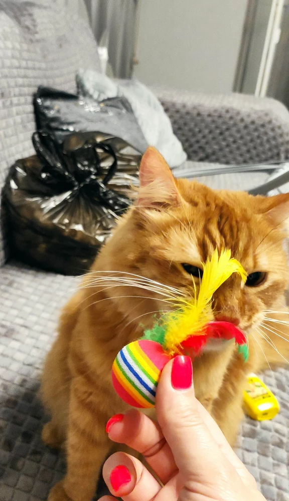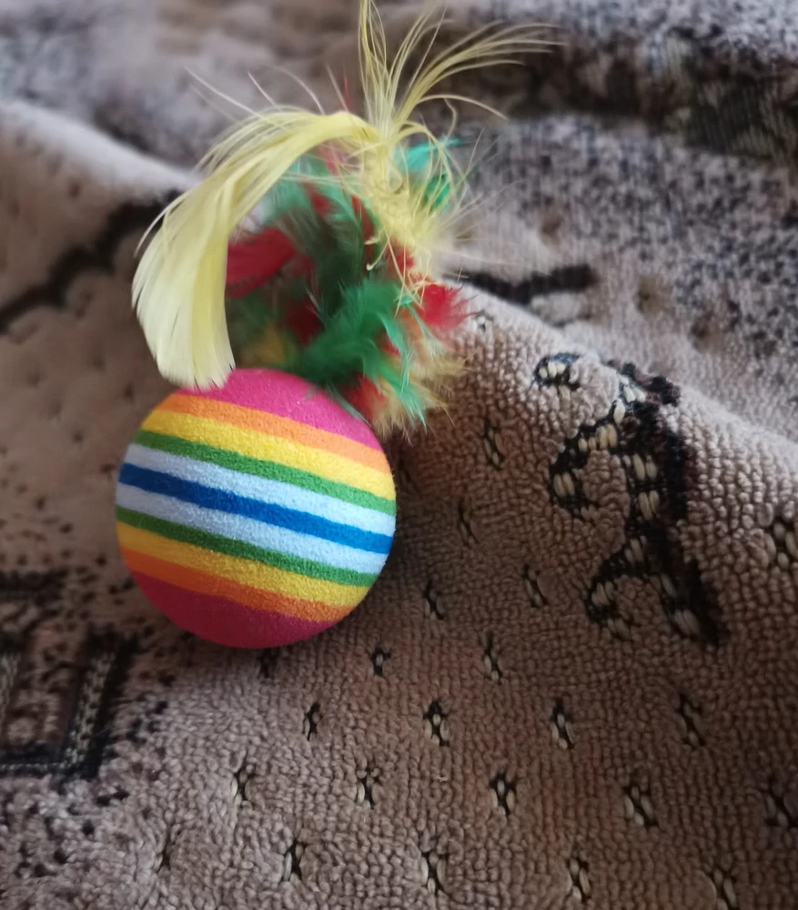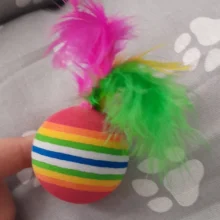 These toys are ideal for solo play or interactive bonding sessions with your cat. The 1.4-inch diameter makes them the perfect size for swatting and carrying around. The bright rainbow colors catch your cat’s attention, while the fluttering feathers mimic prey movement—triggering your cat’s natural hunting instincts. Whether used for independent playtime during the day or training games in the evening, these toys bring out the playful side of any kitty.