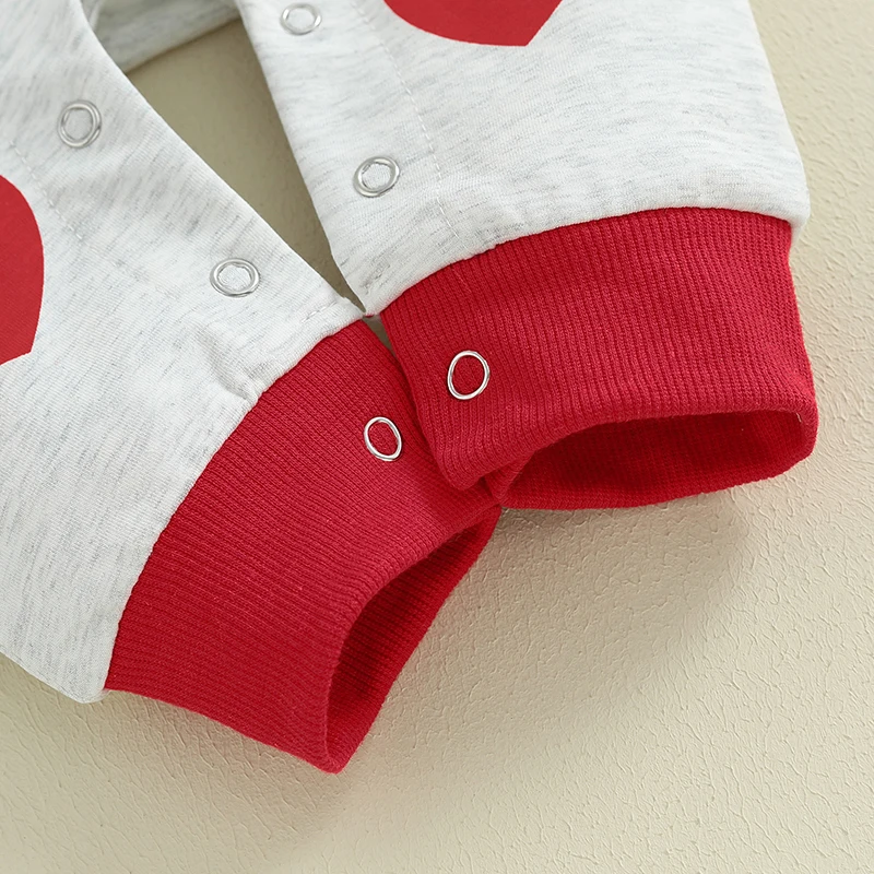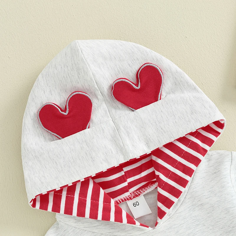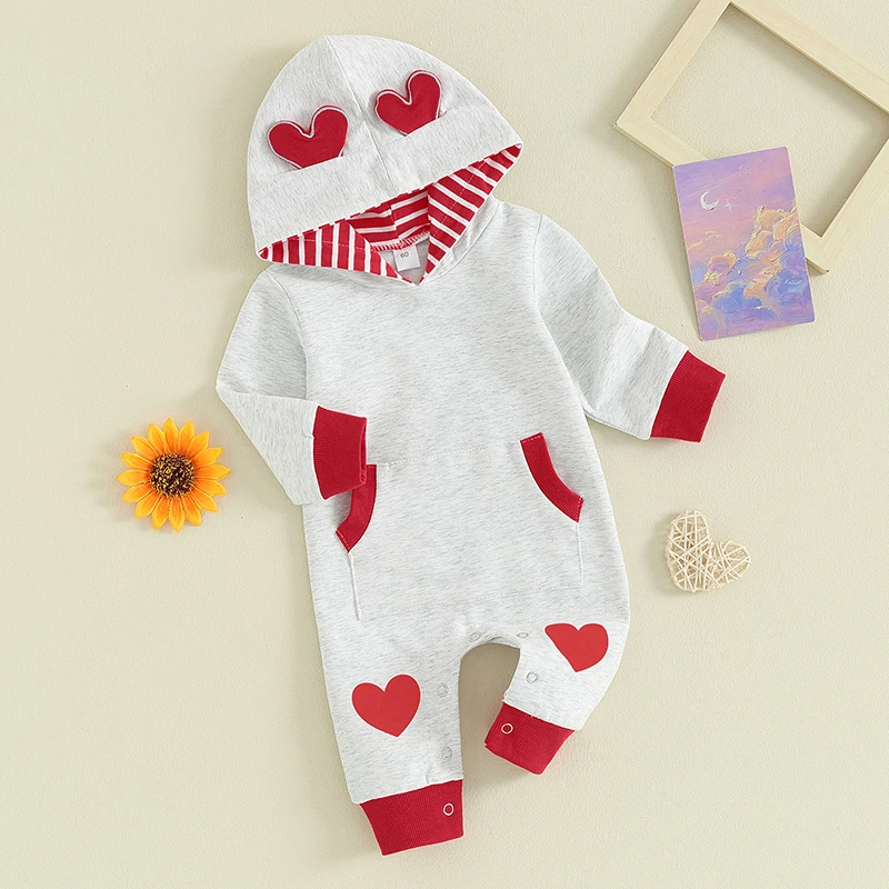 Introducing our adorable Baby Girls’ Valentine’s Day Heart Print Hooded Romper – the perfect blend of comfort, style, and love for your little angel! Designed with cozy long sleeves and a charming heart print, this gray hooded jumpsuit is an ideal choice for celebrating love, not just on Valentine’s Day but all year round. Crafted from a soft blend of 95% cotton and 5% polyester, it ensures your baby enjoys both warmth and comfort with every wear.