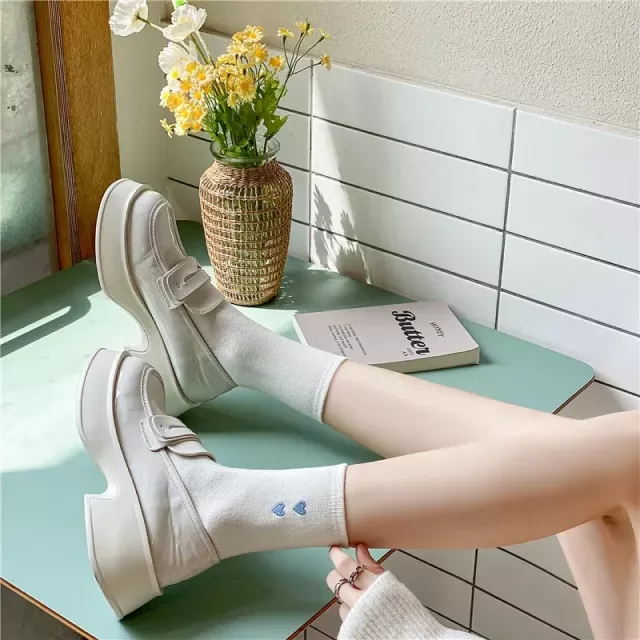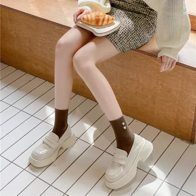 ![Heart Print Socks Women Casual Fashion Harajuku Cotton Crew Socks Women Japanese Style Solid Color Sweet Girls Kawaii Cute Socks]()