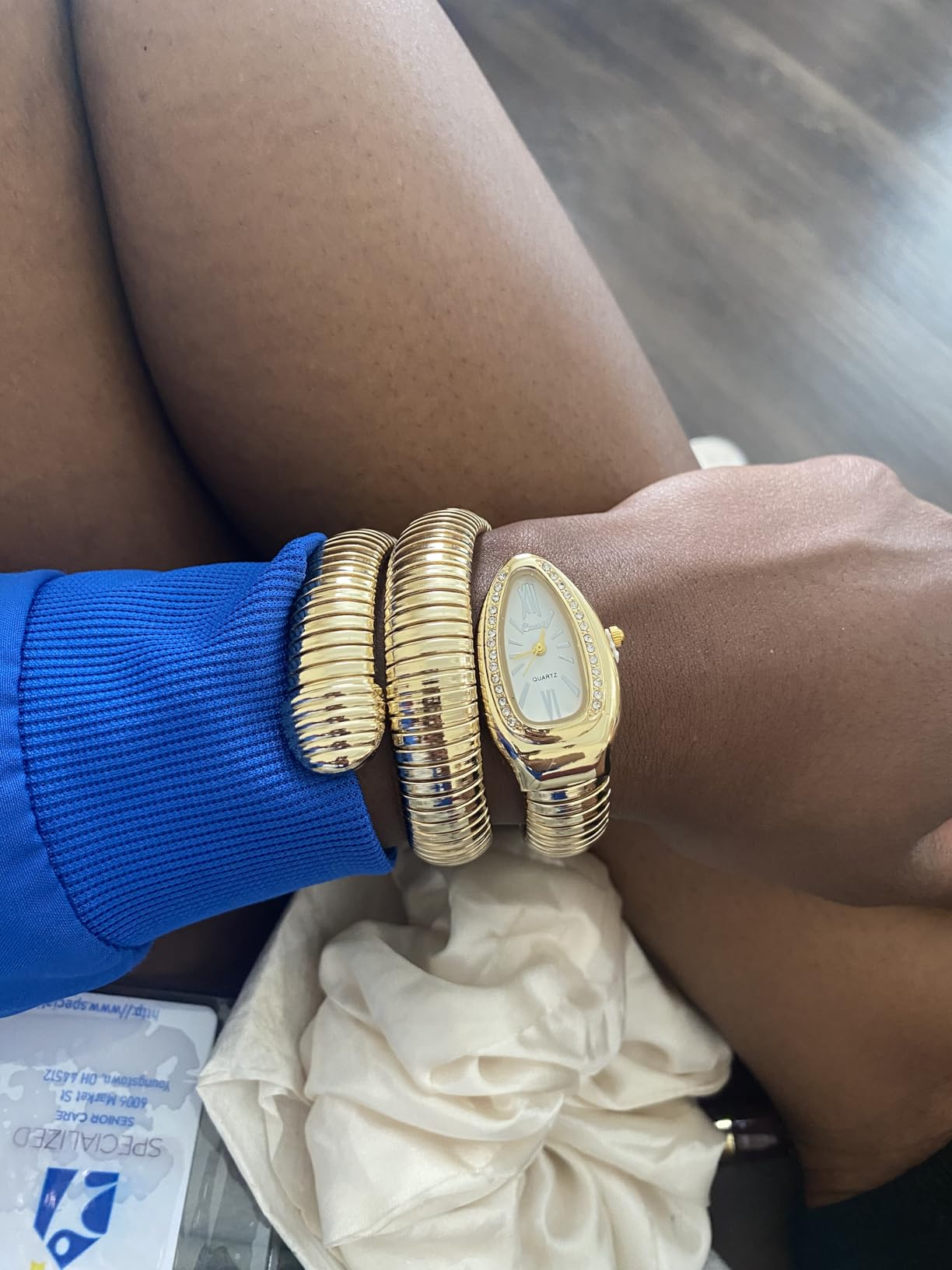 - Chic and Unique Design: Snake-shaped wrap bracelet style turns your watch into a luxurious statement piece.