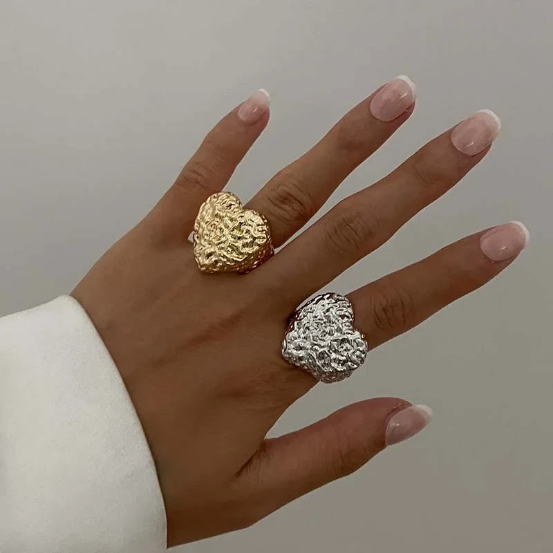 What sets this ring apart is its combination of simplicity and statement. The thick band and open silhouette add a contemporary twist to the timeless heart motif, symbolizing both strength and love. It’s a piece that balances trendy style with vintage charm, making it uniquely yours.